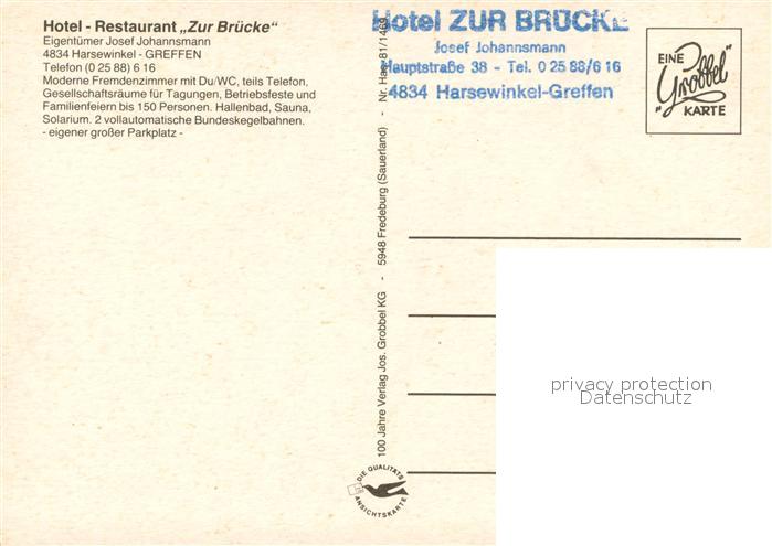 73745354 Greffen Hotel Restaurant Zur Bruecke postalisch nicht gelaufen Erhaltung siehe scans [WerneD78] KatCode: 11110005754016