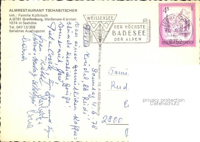 72312581 alte Postkarte Greifenburg Almrestaurant Tschabitscher postalisch gelaufen Erhaltung siehe scans KatCode: 11390212020609
