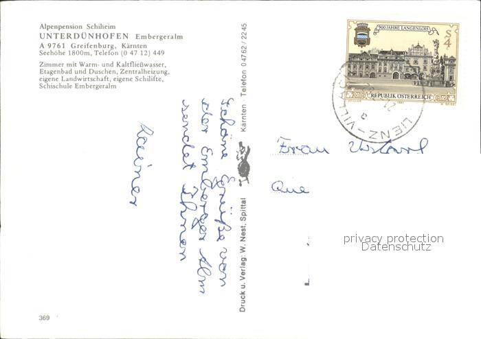 72417403 alte Postkarte Greifenburg Alpenpension Unterduenhofen postalisch gelaufen Erhaltung siehe scans KatCode: 11390212020609