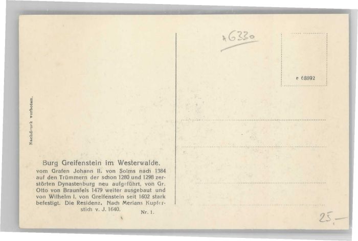 40692552 Greifenstein Hessen Burg KatCode 11110006532010
