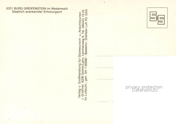 73180747 Greifenstein Hessen Burg Greifenstein Burgruine Landschaftspanorama Westerwald Fliegeraufnahme postalisch nicht gelaufen Erhaltung siehe scans [FriedD77] KatCode: 11110006532010