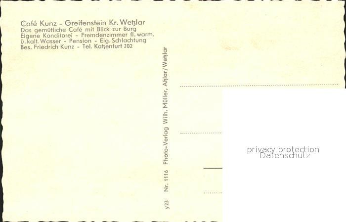 72096027 Greifenstein Hessen Cafe Kunz mit Burgblick postalisch nicht gelaufen Erhaltung siehe scans KatCode: 11110006532010