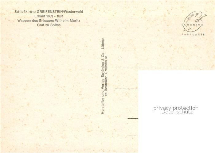 73003351 Greifenstein Hessen Schlosskirche Wappen Wilhelm Moritz Graf zu Solms postalisch nicht gelaufen Erhaltung siehe scans [KathaD81] KatCode: 11110006532010