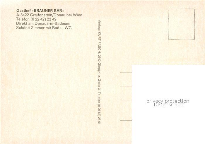 73355318 Greifenstein Niederoesterreich Gasthof Brauner Baer postalisch nicht gelaufen Erhaltung siehe scans [WerneD78] KatCode: 11390