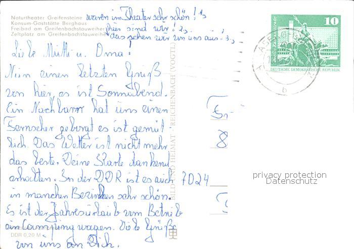 72116594 alte Postkarte Greifensteine Erzgebirge Camping Naturtheater postalisch gelaufen Erhaltung siehe scans KatCode: 11110014171080