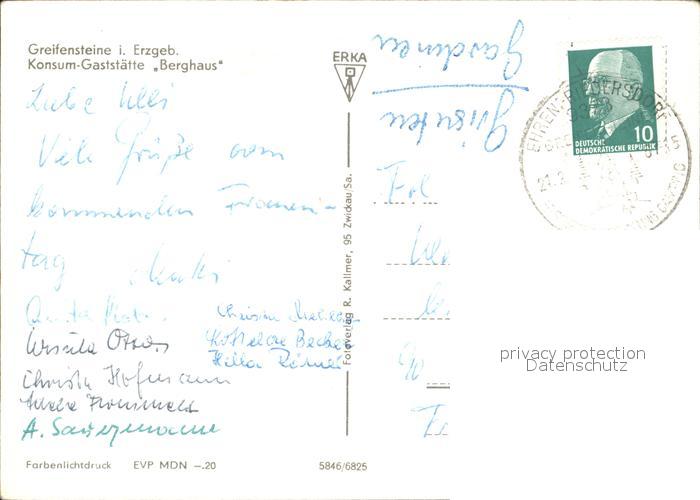 72326699 alte Postkarte Greifensteine Erzgebirge Konsum Gaststaette Berghaus postalisch gelaufen Erhaltung siehe scans KatCode: 11110014171080
