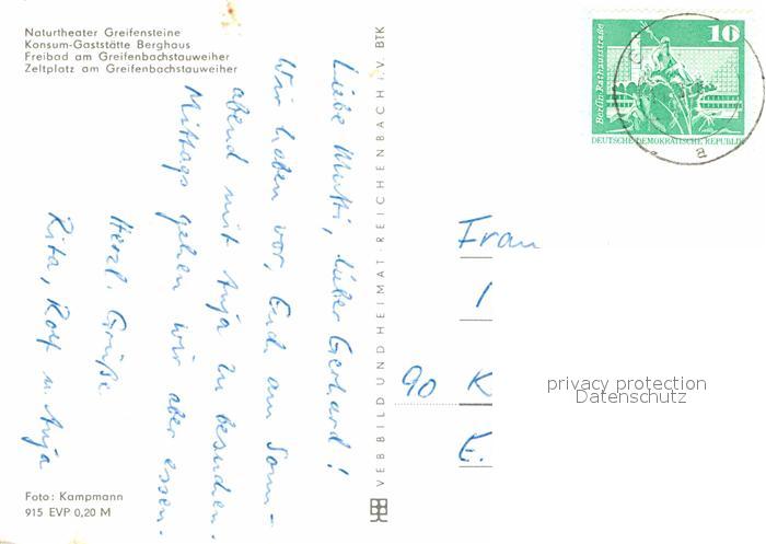 72616735 Greifensteine Erzgebirge Naturtheater Konsum Gaststaette Berghaus Freibad Greifenbachstauweiher Zeltplatz postalisch nicht gelaufen Erhaltung siehe scans [WerneD78] Wern Katcode 11110014171080