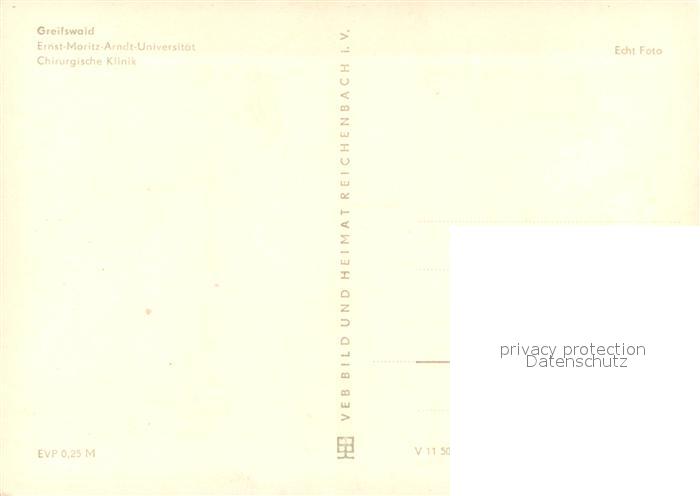 73723062 Greifswald Ernst Moritz Arndt Universitaet Chir Klinik postalisch nicht gelaufen Erhaltung siehe scans [WerneD78] KatCode: 11110013001000