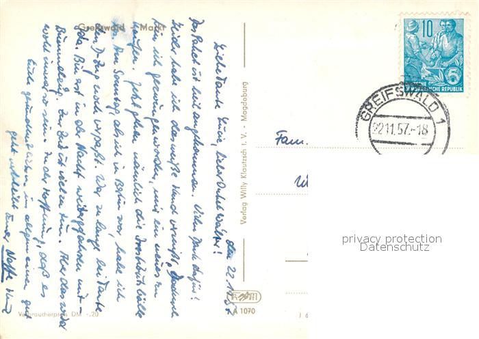 72985647 alte Postkarte Greifswald Markt postalisch gelaufen Erhaltung siehe scans [FriedD77] KatCode: 11110013001000