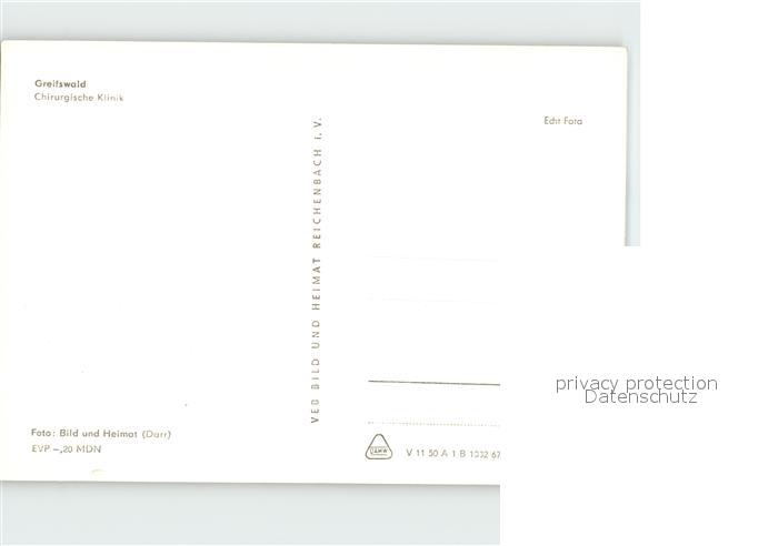 72038590 Greifswald Mecklenburg Vorpommern Chirurgische Klinik postalisch nicht gelaufen Erhaltung siehe scans KatCode: 11110013001000