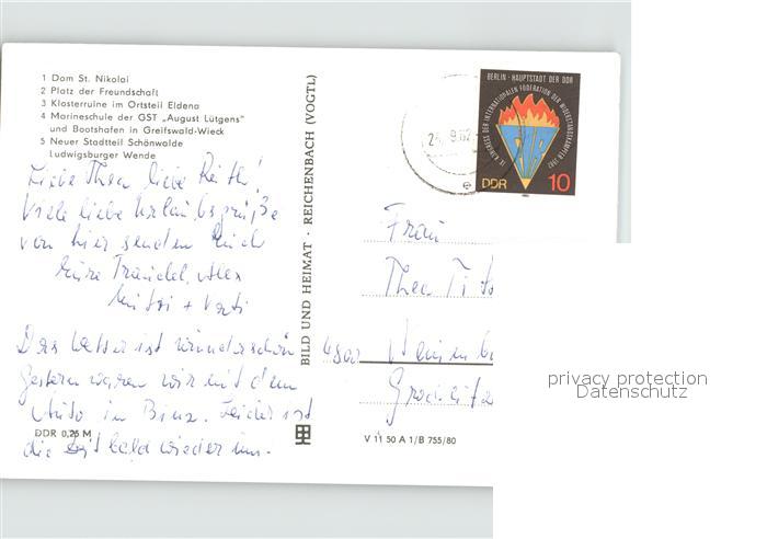 71900576 alte Postkarte Greifswald Mecklenburg Vorpommern Dom Klosterruine Marineschule postalisch gelaufen Erhaltung siehe scans KatCode: 11110013001000