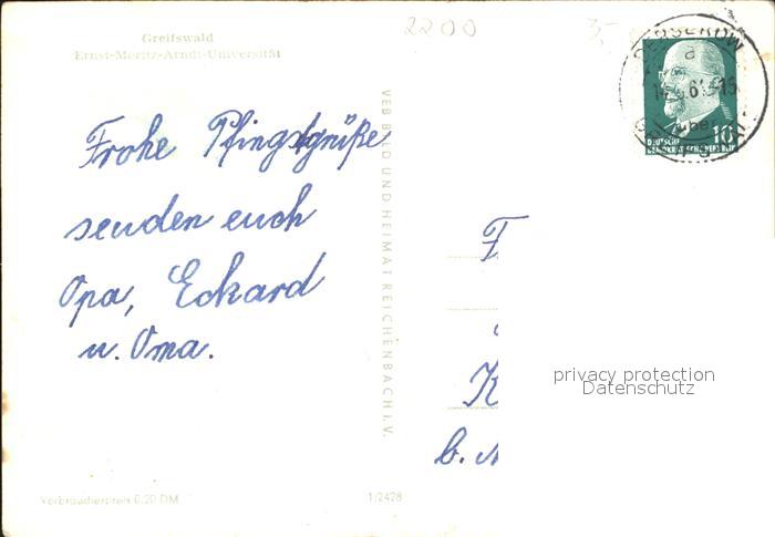 72064791 alte Postkarte Greifswald Mecklenburg Vorpommern Ernst Moritz Arndt Universitaet postalisch gelaufen Erhaltung siehe scans KatCode: 11110013001000
