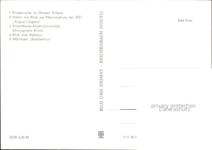 72378786 Greifswald Mecklenburg Vorpommern Klosterruine Hafen Marineschule Rathaus Hotel Boddenhus postalisch nicht gelaufen Erhaltung siehe scans KatCode: 11110013001000