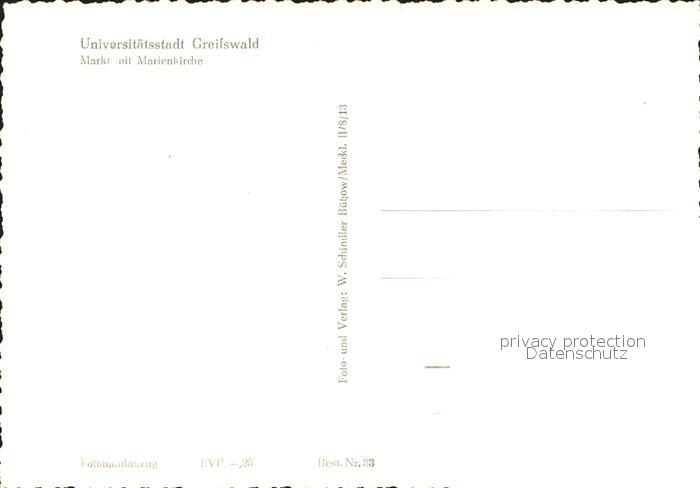 72114898 Greifswald Mecklenburg Vorpommern Markt und Marienkirche postalisch nicht gelaufen Erhaltung siehe scans KatCode: 11110013001000