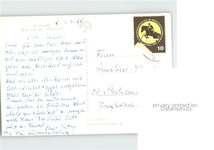 72331639 alte Postkarte Greifswald Mecklenburg Vorpommern Marktplatz postalisch gelaufen Erhaltung siehe scans KatCode: 11110013001000