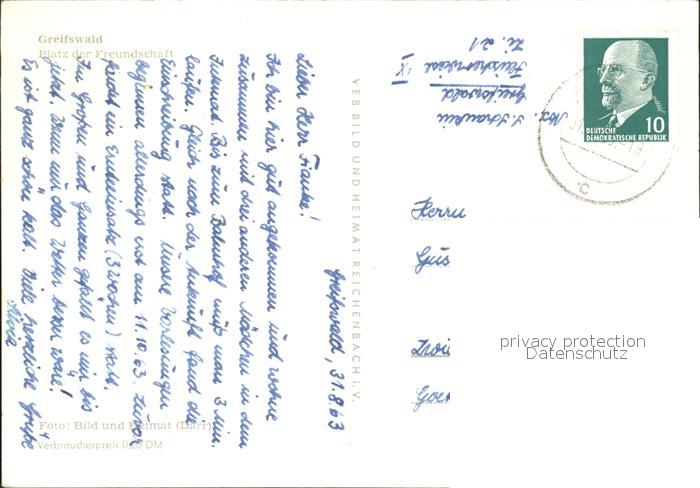 72128747 alte Postkarte Greifswald Mecklenburg Vorpommern Platz der Freundschaft postalisch gelaufen Erhaltung siehe scans KatCode: 11110013001000