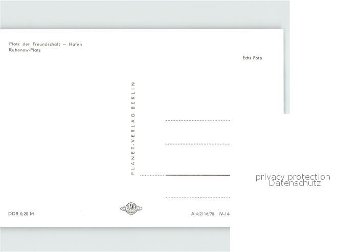 72412806 Greifswald Mecklenburg Vorpommern Platz der Freundschaft Hafen Rubenow Platz postalisch nicht gelaufen Erhaltung siehe scans KatCode: 11110013001000