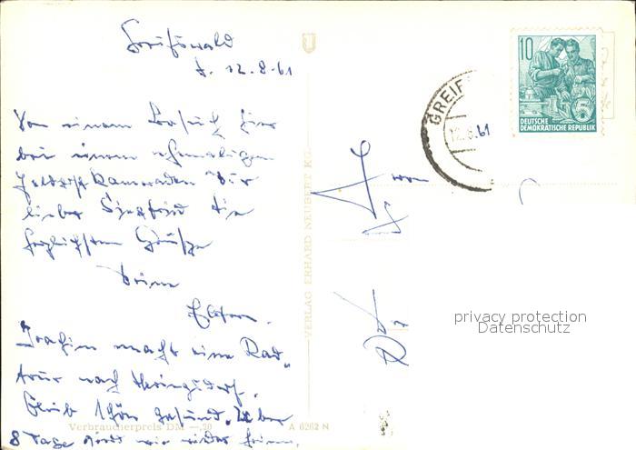 72407987 alte Postkarte Greifswald Mecklenburg Vorpommern Rathaus Platz der Freundschaft Nicolaikirche Chirurgische Klinik Universitaet postalisch gelaufen Erhaltung siehe scans KatCode: 11110013001000