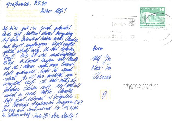 72418512 alte Postkarte Greifswald Mecklenburg Vorpommern Rathaus Wiecker Klappbruecke Technisches Denkmal Eldena Klosterruine postalisch gelaufen Erhaltung siehe scans KatCode: 11110013001000
