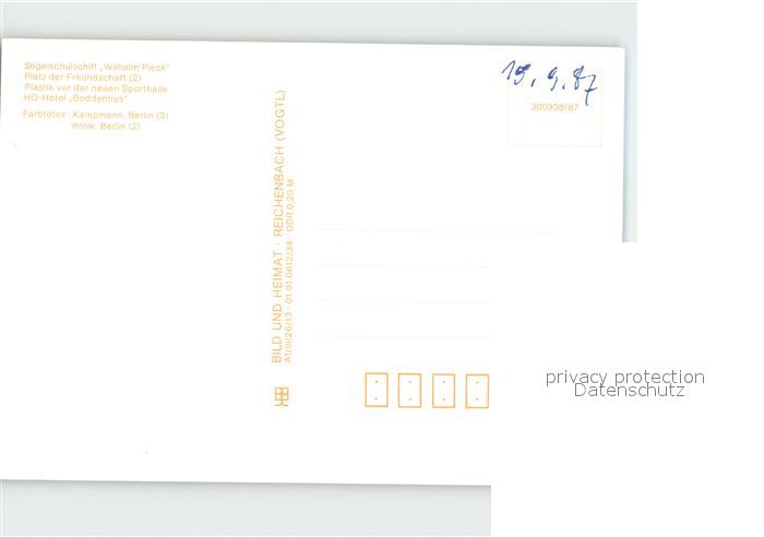 72199018 Greifswald Mecklenburg Vorpommern Segelschulschiff Wilhelm Pieck Platz der Freundschaft Plastik HO Hotel Boddenhus postalisch nicht gelaufen Erhaltung siehe scans KatCode: 11110013001000