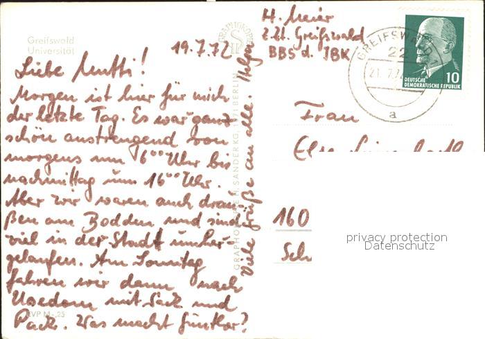 72064777 alte Postkarte Greifswald Mecklenburg Vorpommern Universitaet postalisch gelaufen KatCode: 11110013001000
