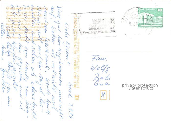 72404527 alte Postkarte Greifswald Mecklenburg Vorpommern Wragelsburg Kinderheim Maxim Gorki Technisches Denkmal postalisch gelaufen Erhaltung siehe scans KatCode: 11110013001000