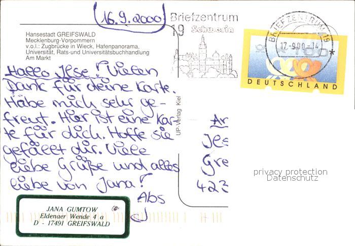 72336039 alte Postkarte Greifswald Mecklenburg Vorpommern Zugbruecke Wieck Hafen Segelschiff Universitaet Buchhandlung Markt postalisch gelaufen Erhaltung siehe scans KatCode: 11110013001000