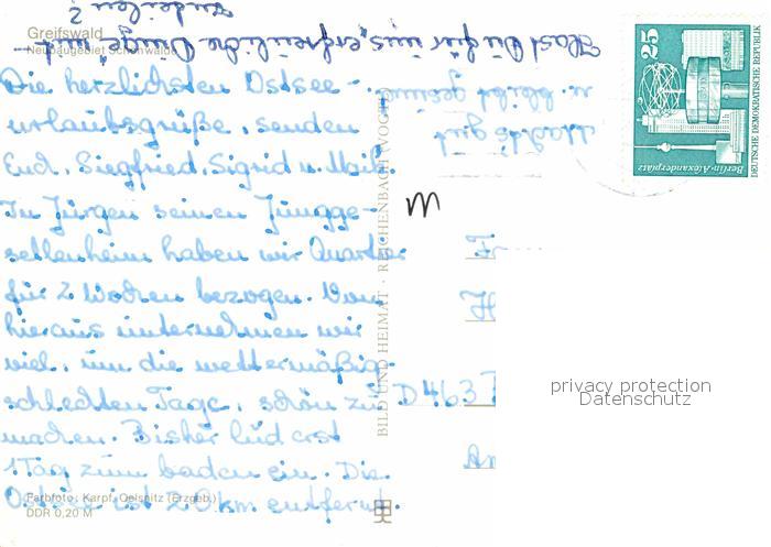 72724199 alte Postkarte Greifswald Neubaugebiet Schoenwalde postalisch gelaufen Erhaltung siehe scans [FriedD77] KatCode: 11110013001000