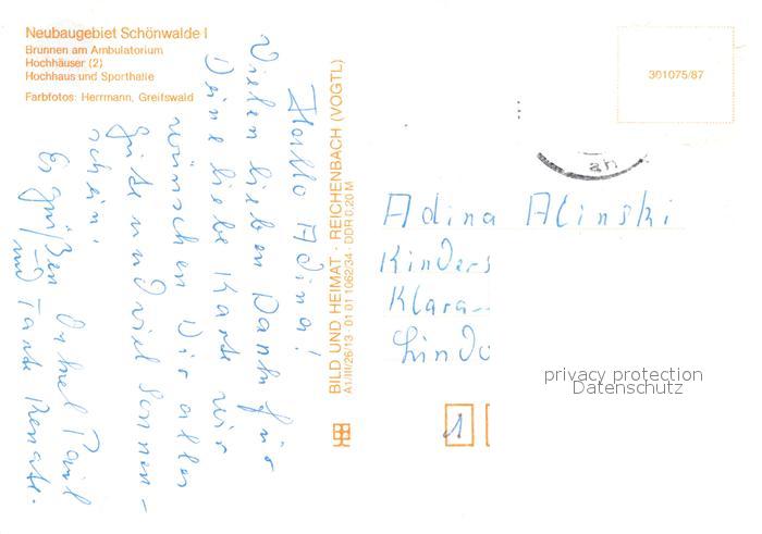72949606 alte Postkarte Greifswald Neubaugebiet Schoenwalde postalisch gelaufen Erhaltung siehe scans [WerneD78] KatCode: 11110013001000