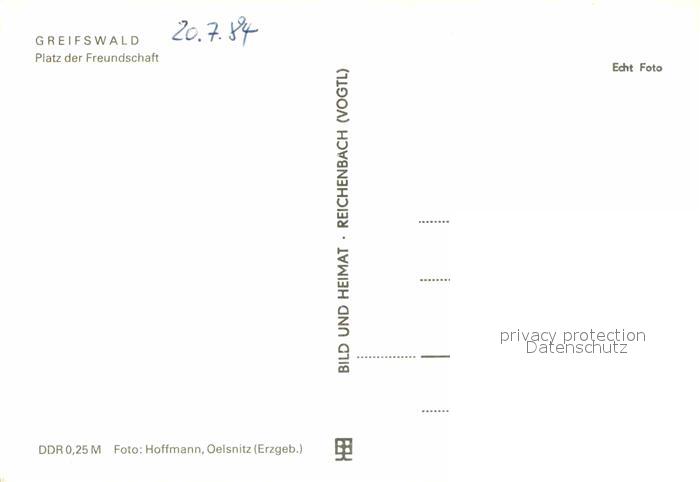 72790849 alte Postkarte Greifswald Platz der Freundschaft postalisch gelaufen Erhaltung siehe scans [AndreD76] KatCode: 11110013001000