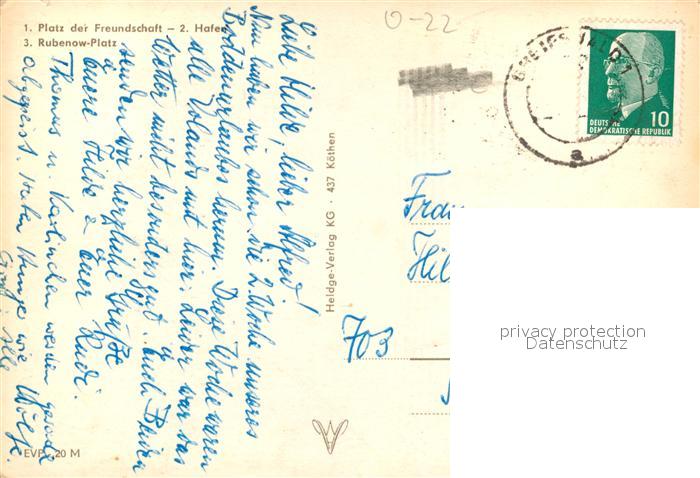 73037265 alte Postkarte Greifswald Platz der Freundschaft Hafen Rubenow Platz postalisch gelaufen Erhaltung siehe scans [KathaD81] KatCode: 11110013001000