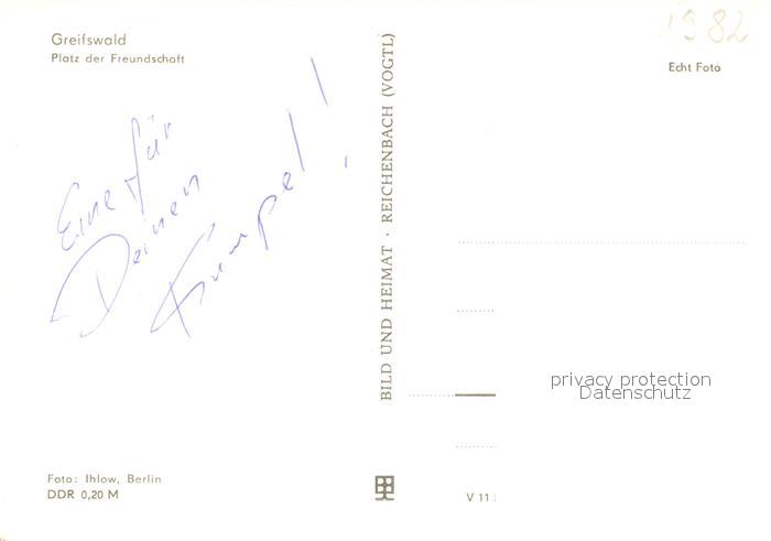 72973968 Greifswald Platz der Freundschaft Historische Gebaeude Giebelhaus postalisch nicht gelaufen Erhaltung siehe scans [FriedD77] KatCode: 11110013001000