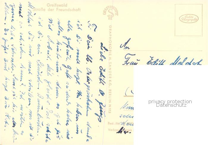 73853937 Greifswald Strasse der Freundschaft postalisch nicht gelaufen Erhaltung siehe scans [WerneD78] KatCode: 11110013001000