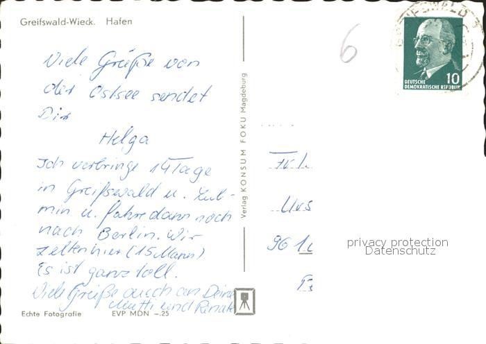 72310907 alte Postkarte Greifswald Wieck Hafen postalisch gelaufen Erhaltung siehe scans KatCode: 11110013001000
