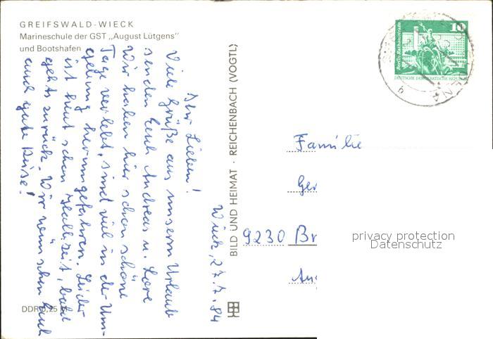 32040793 alte Postkarte Greifswald Wieck Marineschule Bootshafen Fliegeraufnahme postalisch gelaufen Erhaltung siehe scans KatCode: 11110013001000