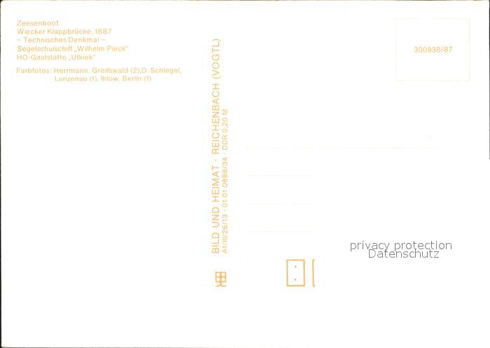 72333115 Greifswald Wieck Zeesenboot Wiecker Klappbruecke postalisch nicht gelaufen Erhaltung siehe scans KatCode: 11110013001000