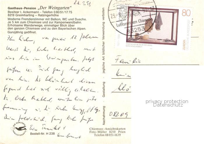 73766060 alte Postkarte Greimharting Gasthaus Pension Der Weingarten Gastraum Panorama postalisch gelaufen Erhaltung siehe scans [WerneD78] KatCode: 11110009187168