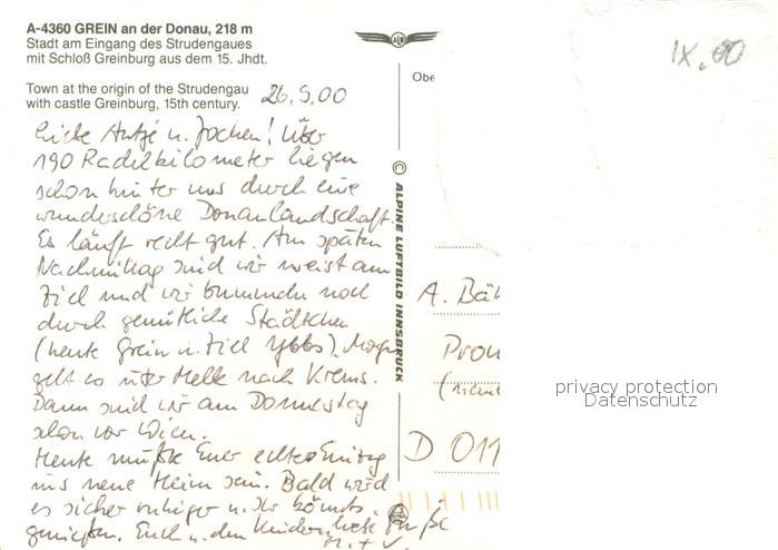 73682645 Grein Donau Oberoesterreich Fliegeraufnahme mit Schloss Greinburg postalisch nicht gelaufen Erhaltung siehe scans [WerneD78] KatCode: 11390313041105