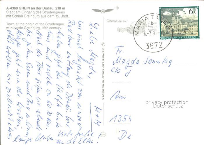 72495534 alte Postkarte Grein Donau Oberoesterreich Fliegeraufnahme mit Schloss postalisch gelaufen Erhaltung siehe scans KatCode: 11390313041105
