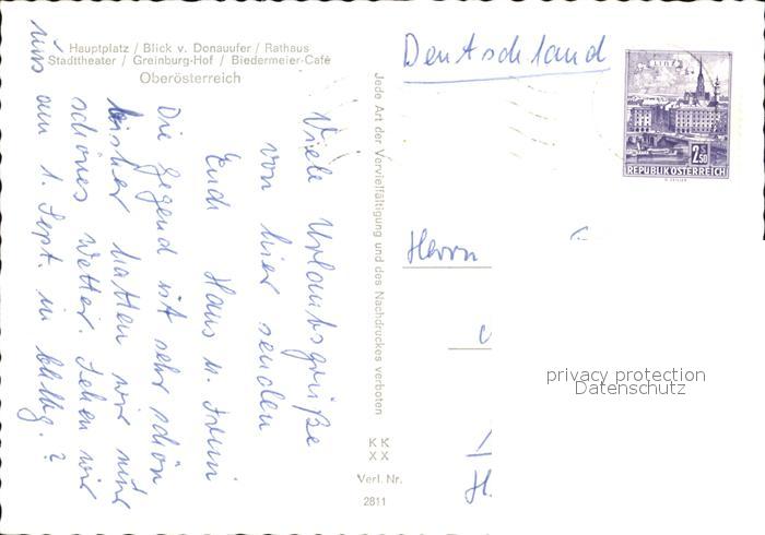 72438996 alte Postkarte Grein Donau Oberoesterreich Hauptplatz Rathaus Greinburg-Hof postalisch gelaufen Erhaltung siehe scans KatCode: 11390313041105
