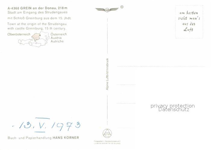 72699873 Grein Donau Oberoesterreich Sommerfrische Schloss Fliegeraufnahme postalisch nicht gelaufen Erhaltung siehe scans [FriedD77] KatCode: 11390313041105