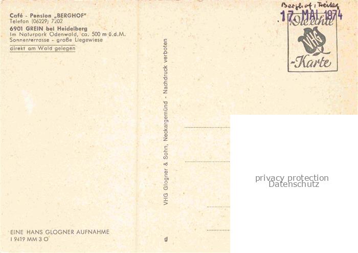 74048631 Grein Heidelberg Neckar Cafe Pension Berghof Gastraeume postalisch nicht gelaufen Erhaltung siehe scans [WerneD78] KatCode: 11110008221000