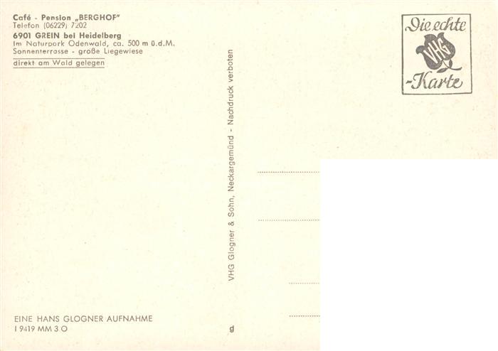 73915235 Grein Heidelberg Neckar Cafe Pension Berghof Grein Gastraeume postalisch nicht gelaufen Erhaltung siehe scans [FriedD77] KatCode: 11110008221000