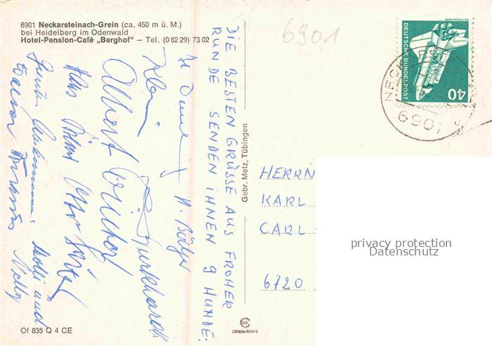 74048499 alte Postkarte Grein Neckarsteinach Hotel Cafe Berghof Terrasse postalisch gelaufen Erhaltung siehe scans [WerneD78] KatCode: 11110006431018