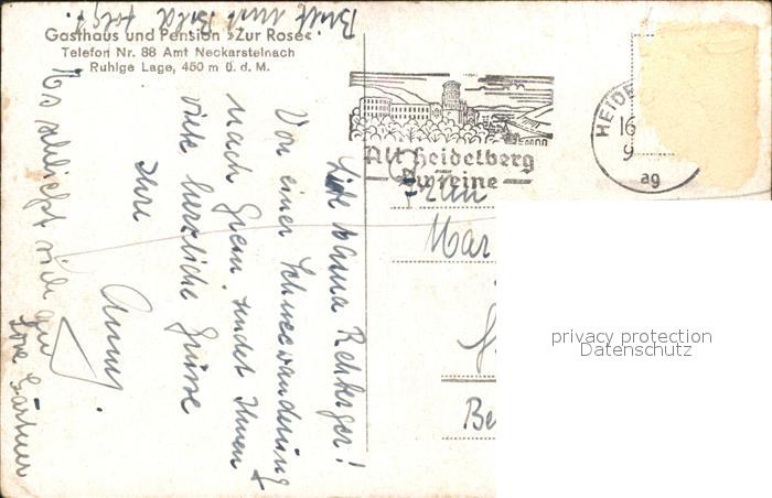 31706299 alte Postkarte Grein Neckarsteinach Ortsansicht Gasthaus Pension Zur Rose postalisch gelaufen KatCode: 11110006431018