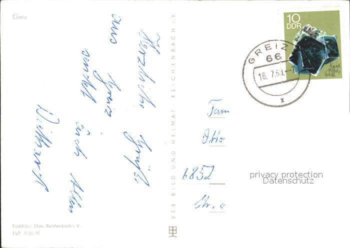 72310633 alte Postkarte Greiz Thueringen postalisch gelaufen Erhaltung siehe scans KatCode: 11110016076022