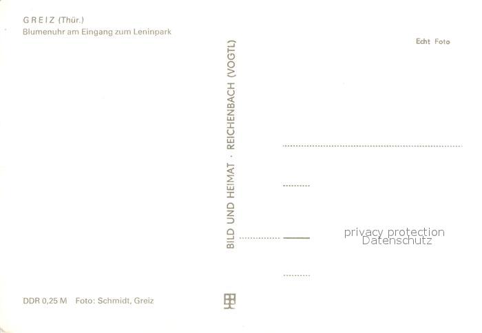 72963792 Greiz Thueringen Blumenuhr am Eingang zum Leninpark postalisch nicht gelaufen Erhaltung siehe scans [FriedD77] KatCode: 11110016076022