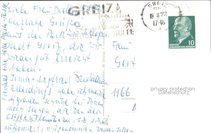 72022437 alte Postkarte Greiz Thueringen Brunnen an Friedensbruecke postalisch gelaufen Erhaltung siehe scans KatCode: 11110016076022