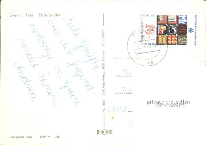 72181034 alte Postkarte Greiz Thueringen Elsterbruecke postalisch gelaufen Erhaltung siehe scans KatCode: 11110016076022