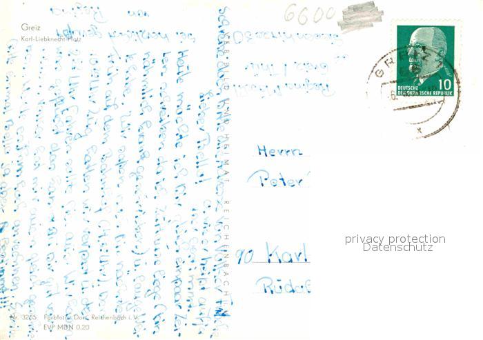 72775002 alte Postkarte Greiz Thueringen Karl-Liebkneckt-Platz postalisch gelaufen Erhaltung siehe scans [NatalD47] KatCode: 11110016076022